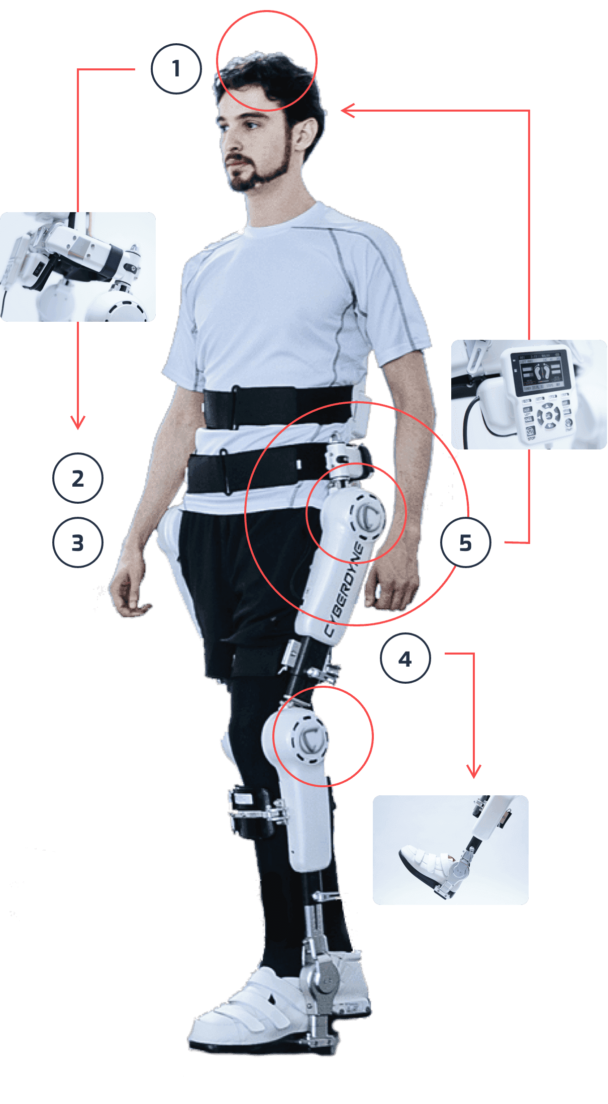 Bei gelähmten Patienten können diese Signale zu schwach sein, um eine richtige Bewegung auszulösen. HAL kann jedoch schwache BES, die durch die Haut gelangen, sensorisch erfassen, verarbeiten und gleichzeitig mit Motoren, die sich an jedem Hüft- und Kniegelenk befinden, die gewünschte Bewegung unterstützen.