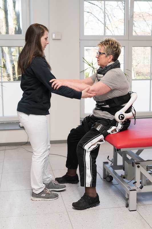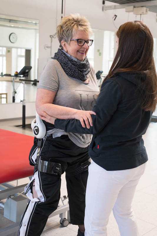 Individuen im Prozess des Wiedererlernens der richtigen Bewegungsausführung unterstützen. Unsere Technologie ermutigt Menschen eigenständig zu Gehen.